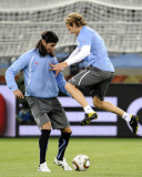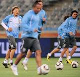 图文-乌拉圭备战小组赛首战 队员们相互间开玩笑