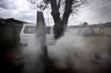 图文-加纳国家队载誉归国 球迷点火庆祝加纳队回国